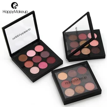 Happy Makeup 9 Colors Shimmer Matte Pigment Glitter Eyeshadow Palette Artist Shadow Palette Makeup Metallic Eye Shadow Powder